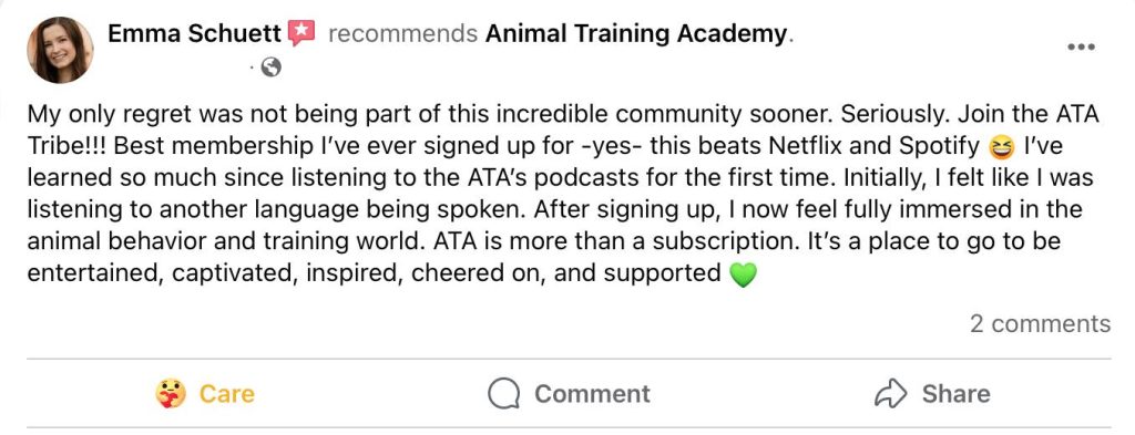 We encourage you to explore what the Animal Training Academy has to offer. If you find that our approach aligns with your training goals, we would be delighted to have you as a member. And if you’re unsure, our 30-day no-questions-asked money-back guarantee allows you to experience the academy risk-free and decide if it’s the right fit for you.