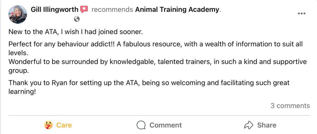 Specialised Focus for Advanced Learning: While the Animal Training Academy primarily caters to intermediate and advanced level trainers, we welcome all who are passionate about enhancing their animal training skills. Our resources and community are geared towards deepening the knowledge, skills, and confidence of those who already have a foundation in animal training. However, this doesn’t mean that individuals facing challenges with their pets at home won’t find value in our membership.